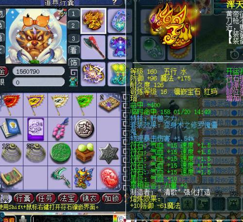 装备名称: 金水菩提/浑天玄火盔/详细信息:等级140级、耐久度114、五行金/等 级 160 五行水 防御+96魔法+175 耐久度 126