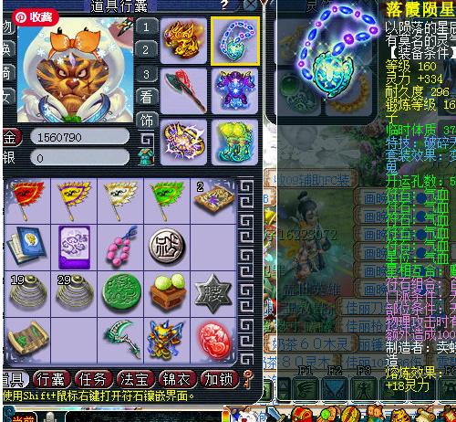 装备名称: 落霞陨星坠. 所有区服: [双平台]时空之隙 详细信息:等级160 灵力+334 耐久度 296 锻炼等级16
